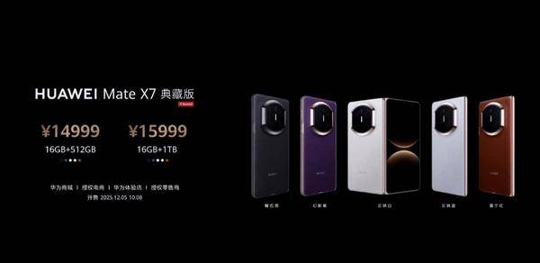 华为发布新款万元大折叠:Mate X7 1TB版售价1.6万元