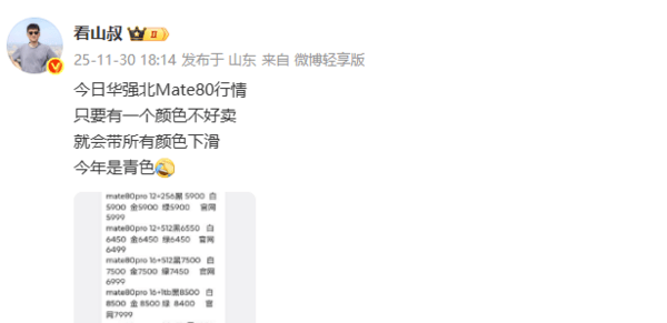 华为Mate 80系列华强北报价分析:部分版本比官网便宜